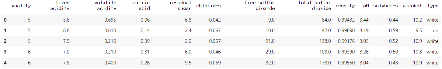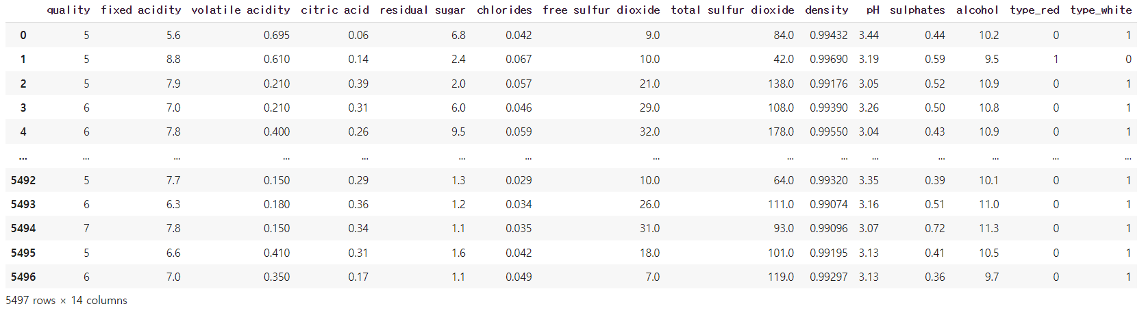 type이란 컬럼이 명목변수이기에 원핫인코딩으로 모델이 학습할 수 있게 바꿔준다.