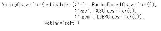 Voting Classifier에 들어가는 모델은 RandomForest, XGB, LGBM으로 soft voting으로 진행한다.
