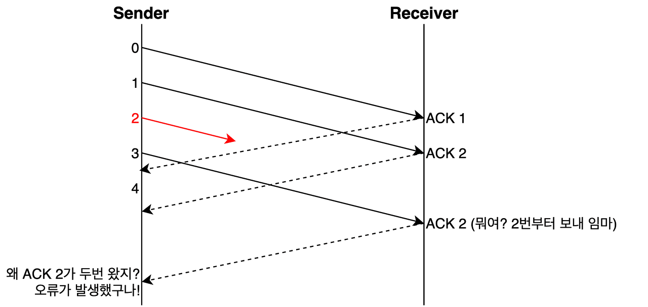- 중복된 응답(ACK)를 받은 경우