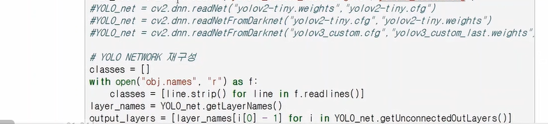 클래스에 대한 정보를 가지고있는 cfg 파일 - yolov3.cfg