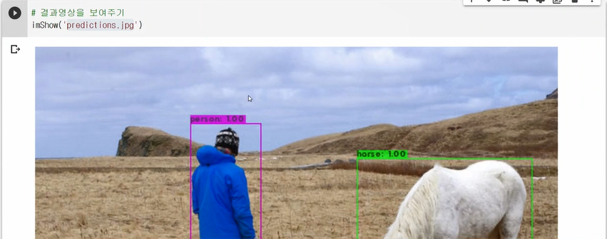 나온 결과는 predictions.jpg로 저장된다.