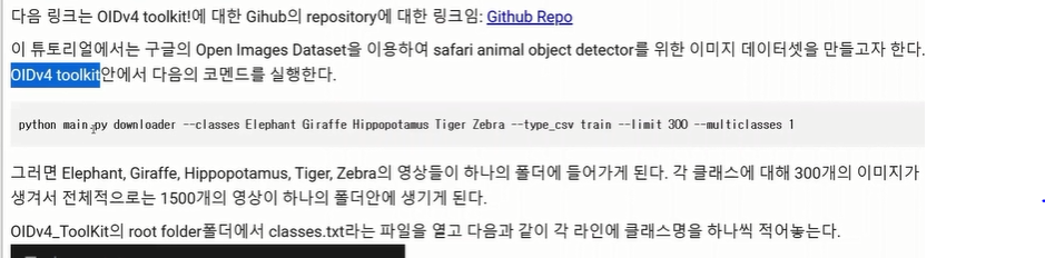 이것을 쉽게 해주는 툴킷이 OIDv4 toolkit임.- 폴더를 영문명으로 해줘야함(경로에 한글이 나오면 오류발생)