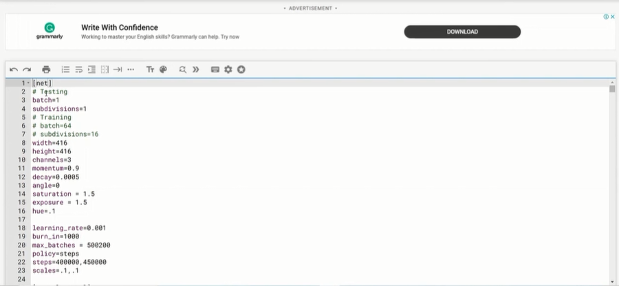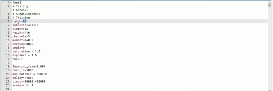 학습을 위해 한번에 64개의 batch를 할 것이고, 이것을 16등분(subdivisions)해서 학습을 시킨다.