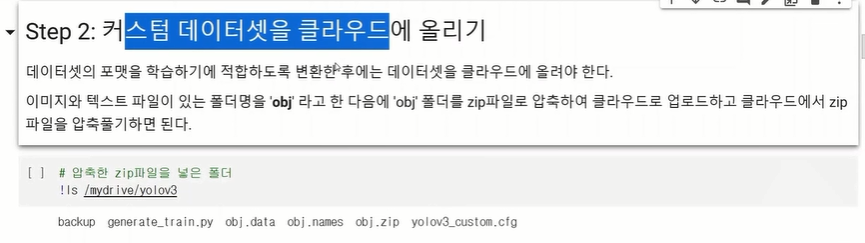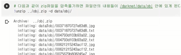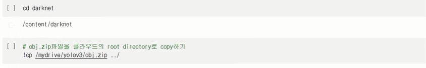 클래스별 이름을 이어붙인 폴더명을 obj로 변경하고 압충하여 colab에업로드 한다.