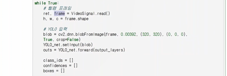 frame으로 부터 기본적인 blob= 출력결과로 얻은 값을 사각형을 씌워서 blob을 input으로 넣어서