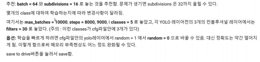 local에서 학습을 시킬때 메모리 부족시 subdivisions를 올리면 해결될 수 있음.