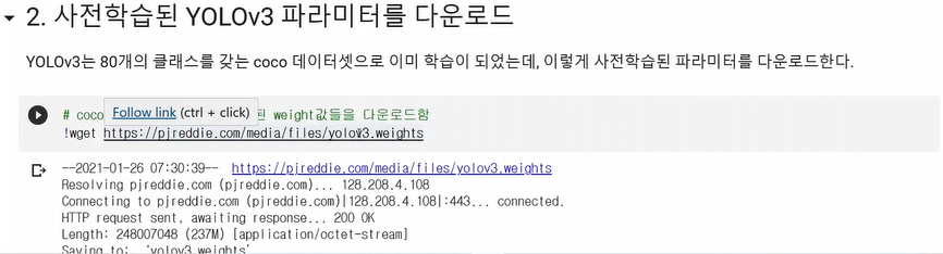 80개의 클래스를 가진 데이터셋으로 사전 학습된 가중치들 다운로드함.