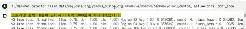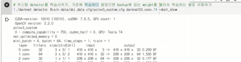 이 부분을 실행해야지 처음 darknet53.conv.74를 실행하면 처음부터 다시 시작하는 불상사가 발생하니 반드시 기억하길 바란다.