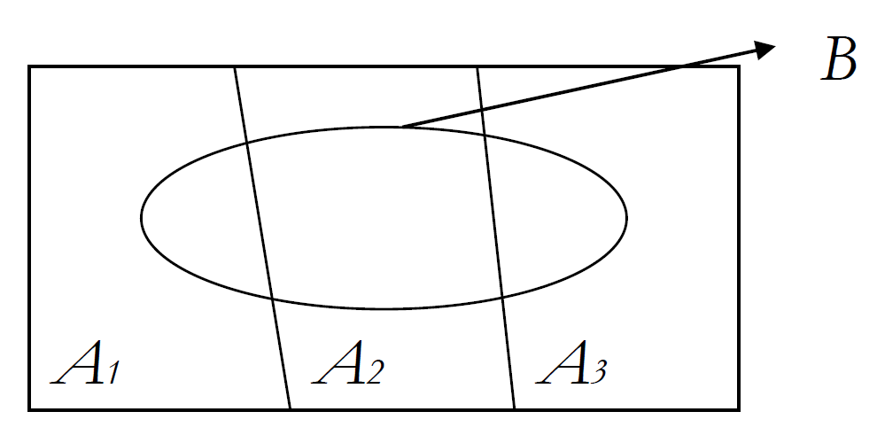 이것은 다시, P(B)=P(A1)P(B|A1)+P(A2)P(B|A2)+P(A3)P(B|A3)=∑P(A)P(B|A)