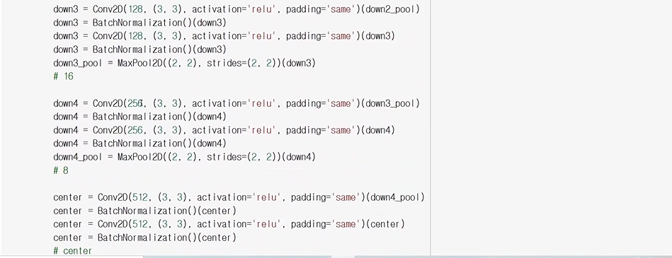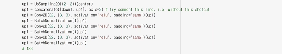 - upSampling을 먼저 수행후 같은 사이즈를 만들어 놓고 concatenate함수를 수행