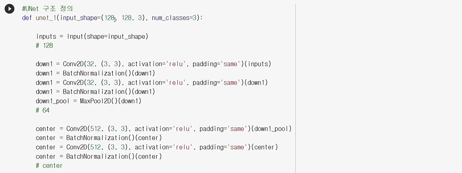 3개의 채널을 갖는 128x128 이미지가 들어가고, 구분할 num_classes는 3개이다.(배경, 객체, boundry)