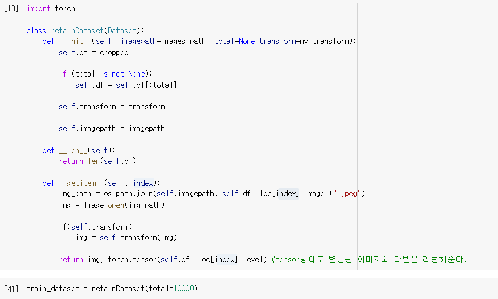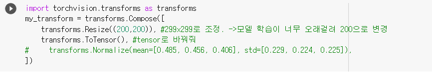 또한 터미널을 이용해서 resize와 tensor로 바꿔주는 함수를 묶어준다. 이러면 나중에 데이터를 변환할 때 편하기 때문에 많이 쓰는 기법.