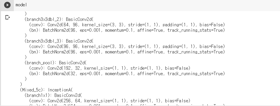 모델을 출력해보면, inception_v3의 layer 층을 보여준다.