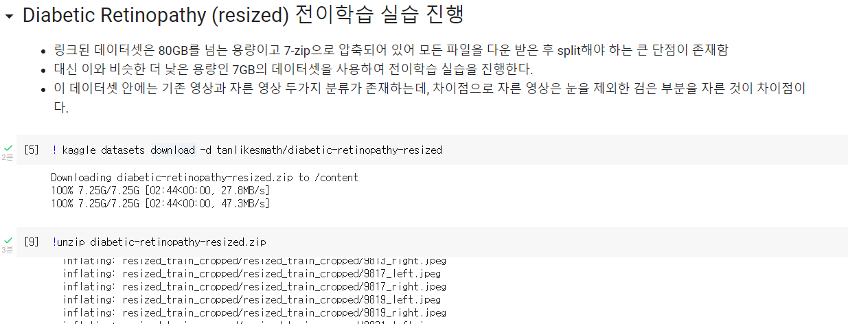 - 안저영상 데이터셋을 다운로드하는 사이트: https://www.kaggle.com/c/diabetic-retinopathy-detection