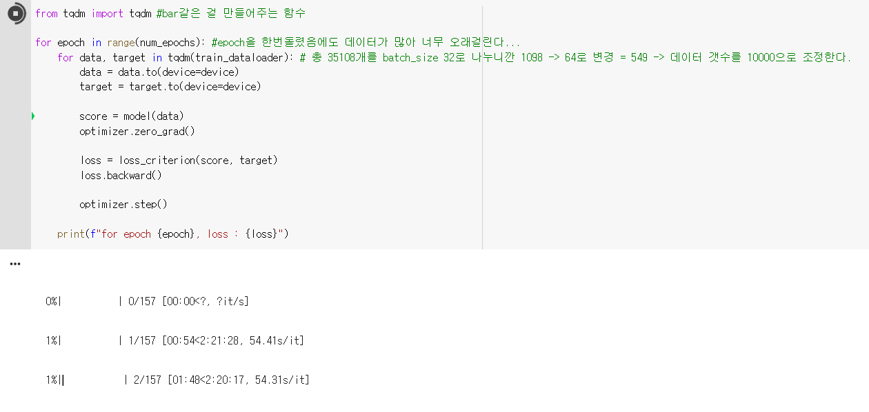 다음으로 모델을 학습시킨다.(아직 공부하는 단계라... 정확히는 모르지만 마지막 FC층만 학습되는 것 아닌가 하는생각이 든다.- 구글링 해봐야겠네)