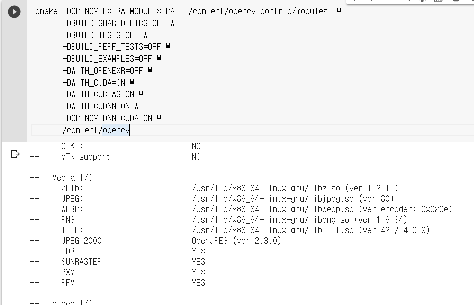 !cmake -DOPENCV_EXTRA_MODULES_PATH=/content/opencv_contrib/modules \
