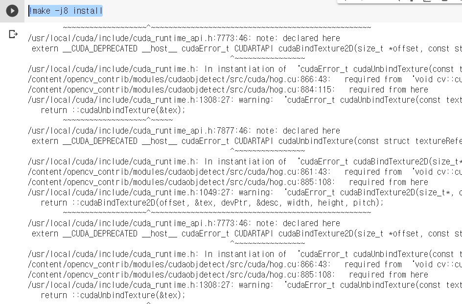 참고자료: https://answers.opencv.org/question/233476/how-to-make-opencv-use-gpu-on-google-colab/ how to make openCV use GPU on google colab - OpenCV Q&A Forum how to make openCV use GPU on g..