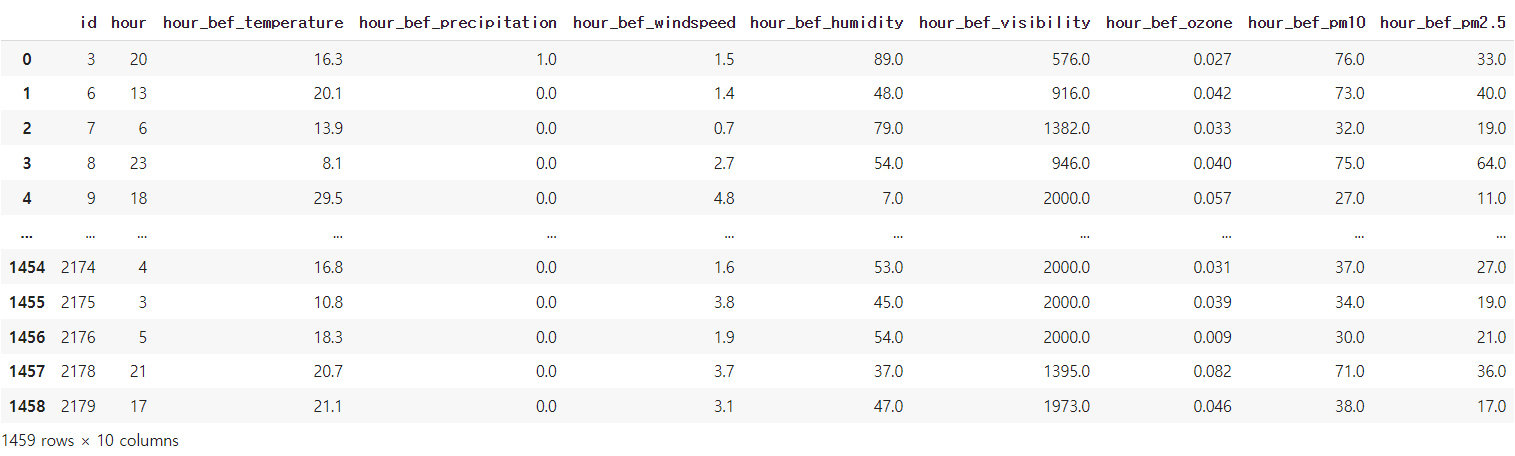 또한 데이콘에서 hour_bef_windspeed와 hour_vef_pm2.5 피쳐도 제거해보는 것을 추천했다.