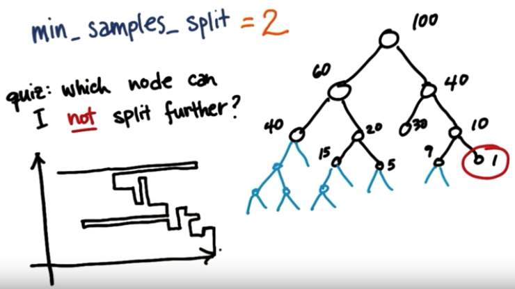 노드를 분할하기 위한 데이터 수 입니다. 해당 노드에 이 값보다 적은 확률변수 수가 있다면 stop. 작을수록 트리는 커지게 됩니다. - 최소향상도(min_impurity_decrease)