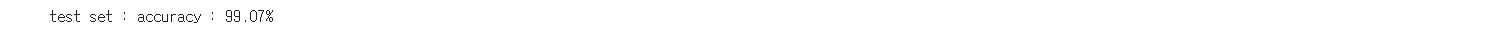 print('test set : accuracy : {:.2f}%'.format(100*correct/len(test_loader.dataset)))