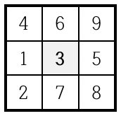 - 굵은 선으로 구분되어 있는 3x3 정사각형 안에도 1부터 9까지의 숫자가 한 번씩만 나타나야 한다.