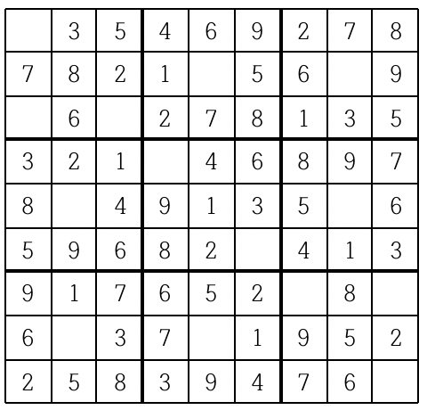 sudoku=[[0, 3, 5, 4, 6, 9, 2, 7, 8],